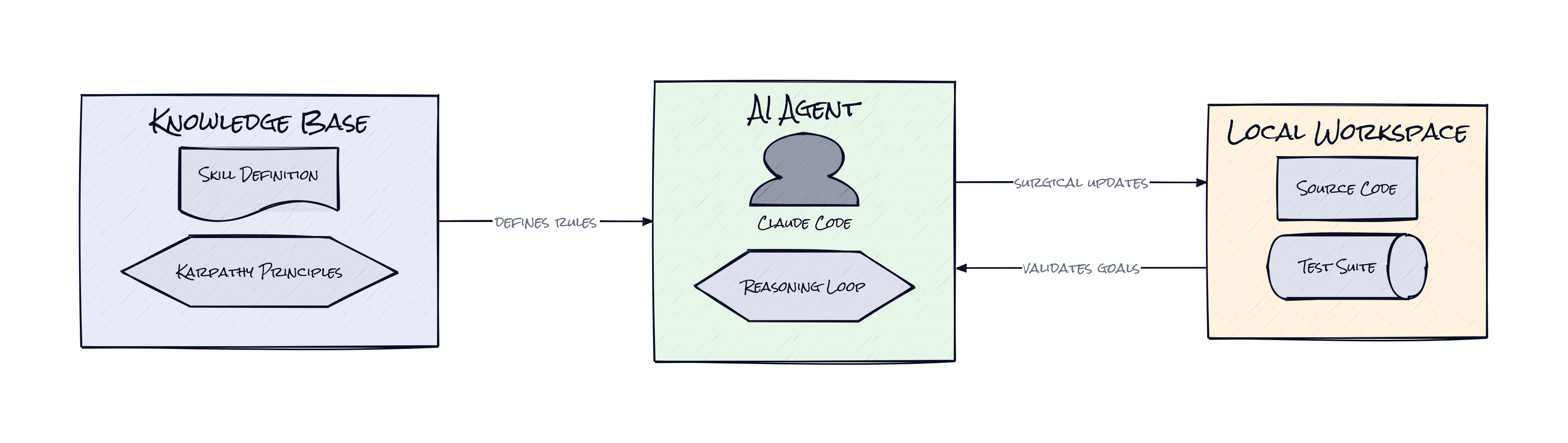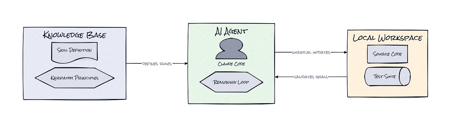 The technical foundation here is remarkably lean, consisting primarily of a Contextual Constraint Layer delivered via a `CLAUDE.md` file or a dedicated plugin for the Claude Code interface. This configuration relies on the system's ability to ingest markdown-based instructions that govern its reasoning process across entire sessions. It leverages the native tool-calling capabilities of modern agents without requiring any external databases or complex server-side logic beyond the LLM itself.